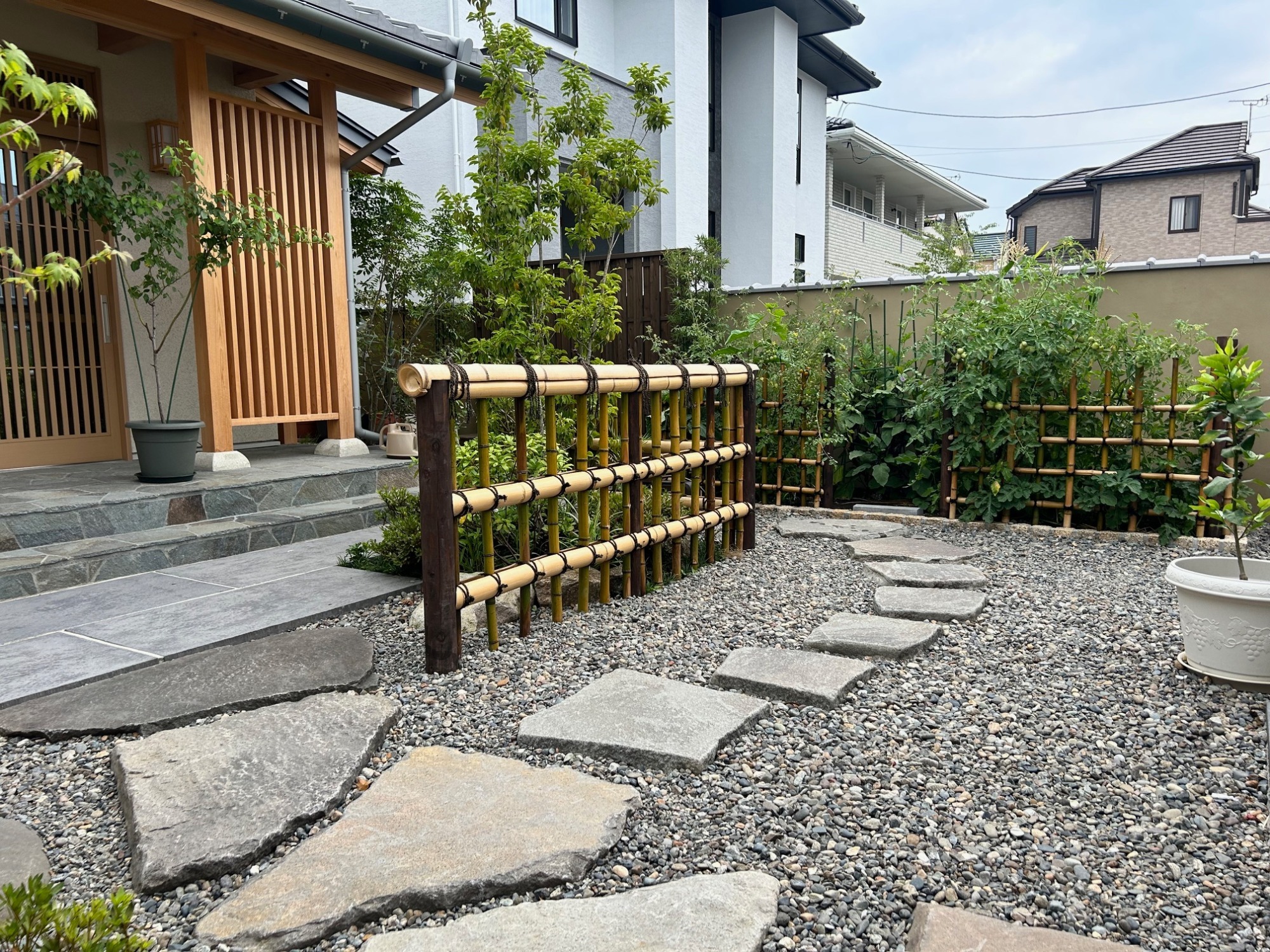 弊社がモットーとしております、和のお庭つくりで培った経験と技術で安らげるお庭、エクステリアと緑を上手に調和させて忙しい日常をわすれるひとときを過ごせるお庭をご提案させていただきます。