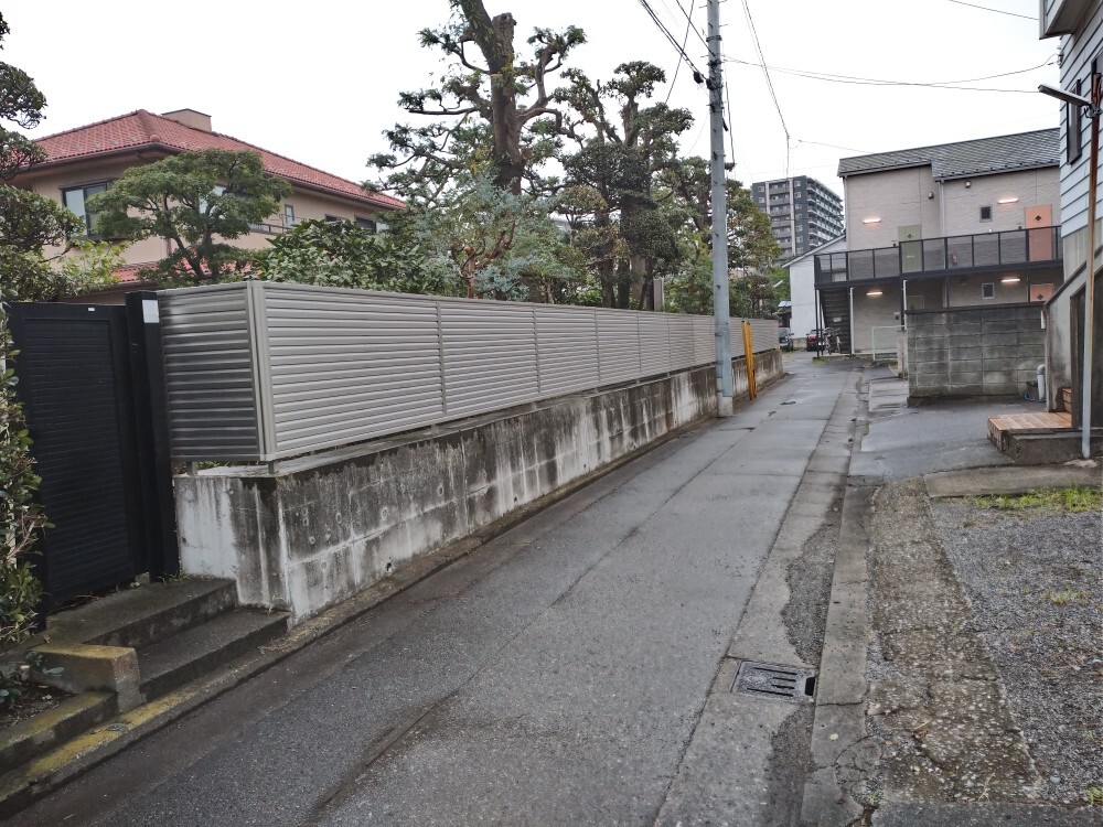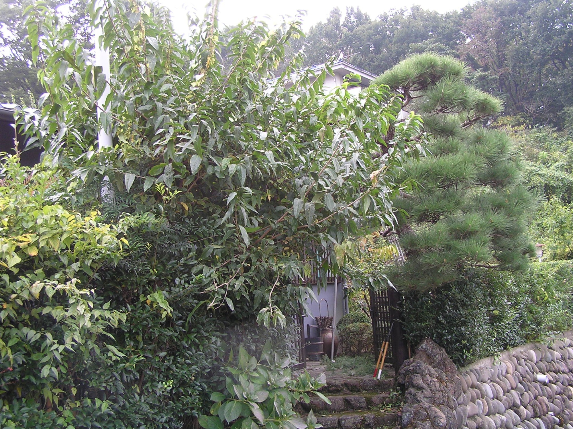 植木が伸び放題で、道路まで出てしまっています。強剪定が必要ですね。