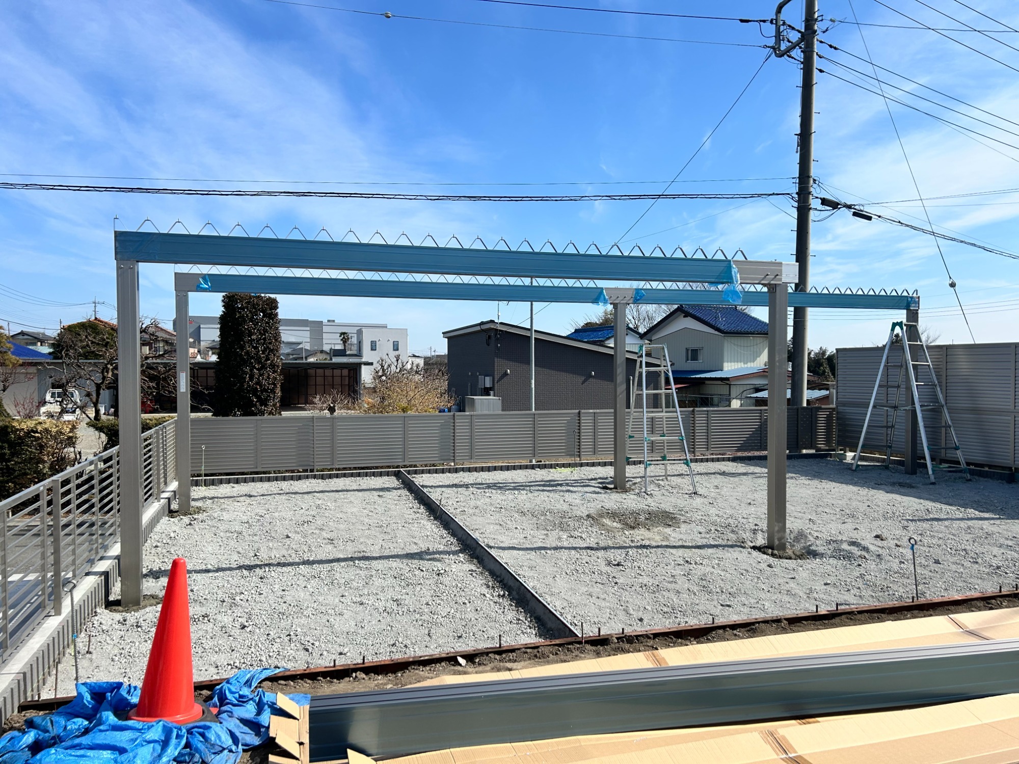 4台用カーポート、コンクリート金ゴテ仕上げ。