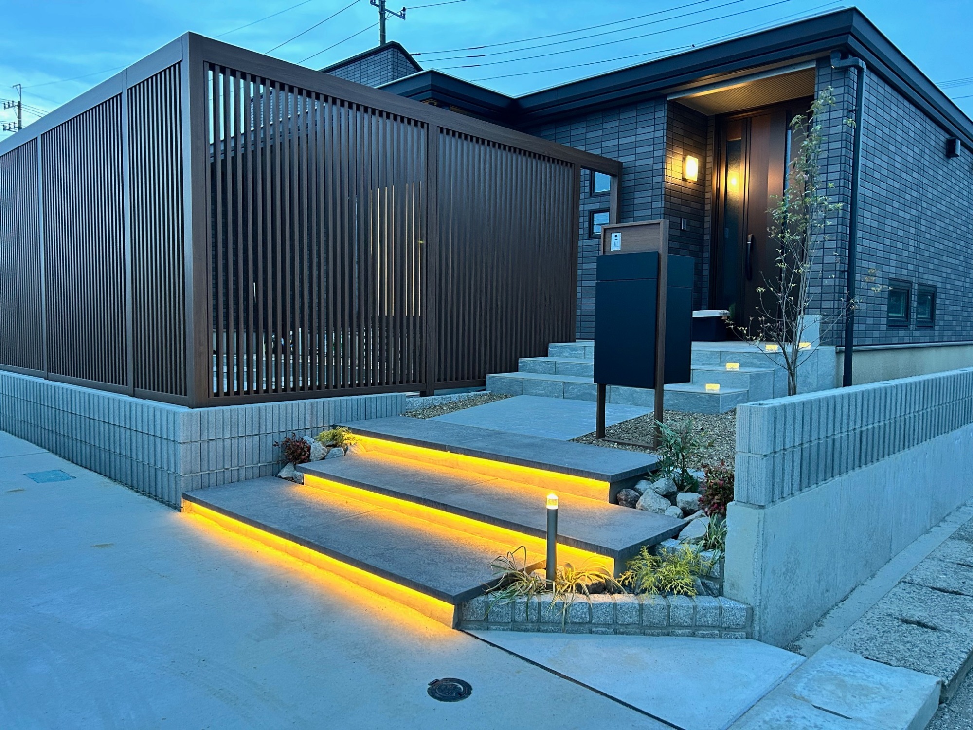 エクステリアと植栽を使って現代風の落ち着いた雰囲気に